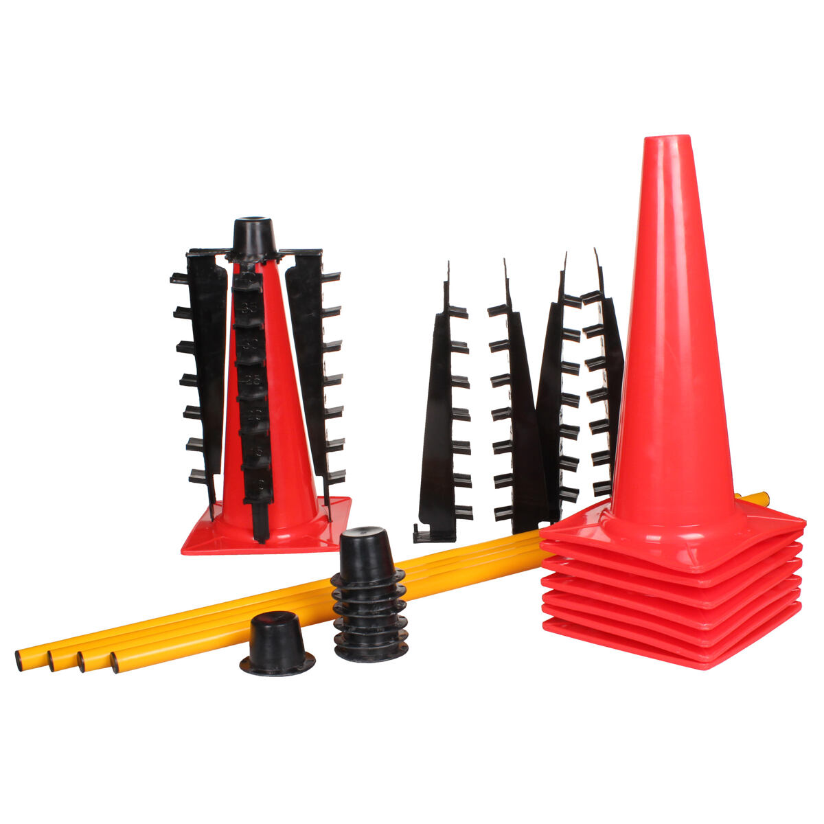Čtyřnásobná překážková sada Merco SP-2. Sada SP-2 je další z mnoha možností agility tréninku. Nepřeberným množstvím kombinací, které tato sada nabízí, si vytvoříte překážkovou dráhu přesně podle vašich představ. Stačí jen, nechat se unést svojí fantazií. Ta výborně poslouží nejen k tréninku závodníků, ale také například ke kondičním tréninkům všech druhů sportovců. Jedna sada se skládá ze dvou kuželů, dvou držáků, s několika úrovněmi, které se přichytí na kužely (46 cm) a jedné PVC tyče (100 cm).