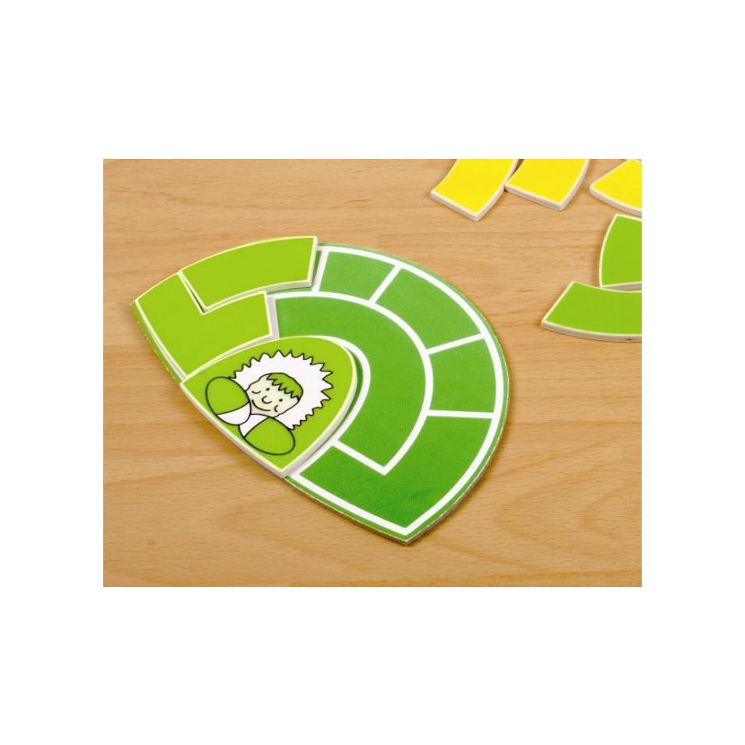 Hráči si vždy vyberou díl puzzle shodné barvy, jako je barva na kostce. Díl stejné barvy, jako je barva vzorové karty, je položen na jejich kartu. Díl odlišné barvy je položen vedle vzorové karty. Jestliže padne žolík, hráč si může na stole vyměnit jeden díl puzzle nesprávné barvy za díl shodné barvy. V případě, že hráč nemá žádné díly puzzle na výměnu, může si vybrat jeden díl puzzle shodné barvy. Když už na hrací ploše není žádný díl shodné barvy, hráč se musí zdržet jedno kolo.