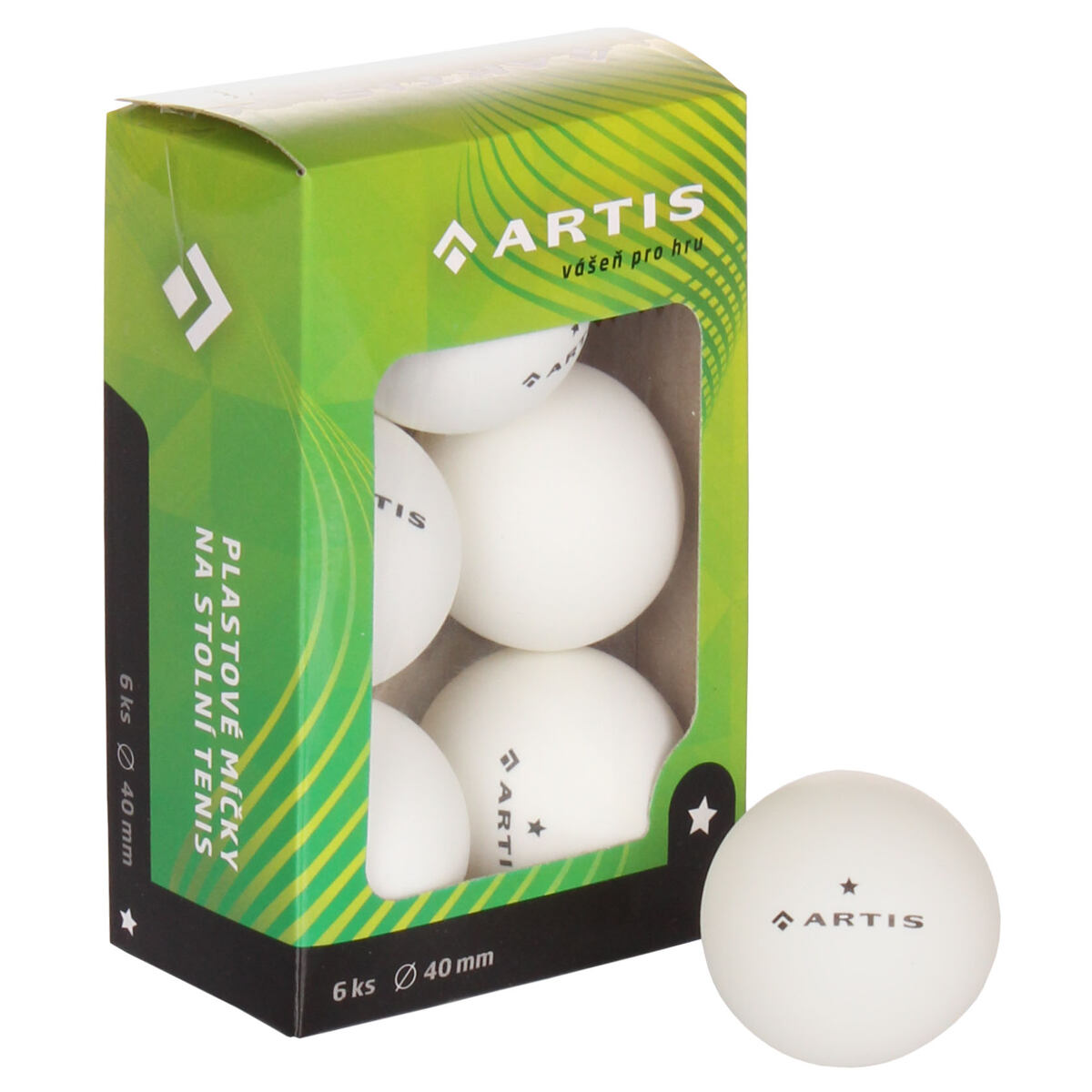 Míčky na stolní tenis Artis 1* jsou vyrobené z odolného ABS plastu, tento model s 1 hvězdou je vhodný především pro trénink začínajících hráčů, kteří si díky nim osvojí základy a následně i mohou dále rozvíjet své hráčské schopnosti. Díky své ceně jsou také oblíbenou volbou škol a sportovních oddílů, kde je velká spotřeba míčků. Míčky Artis1* mají bílou barvu, klasický průměr 40 mm, hmotnost 2,35 - 2,63 g, kulatost