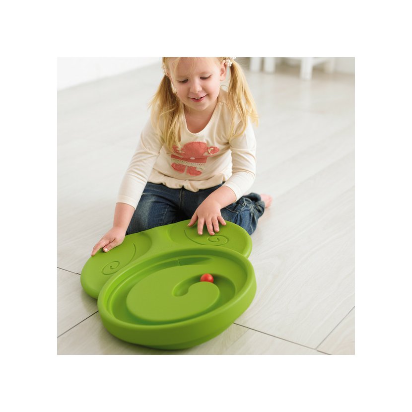 Design disku obsahuje dráhu o dvou úrovních, která umožňuje míčku pohybovat se vpřed plynule z jedné dráhy do druhé prostřednictvým střídavého náklonu vpravo a vlevo. Tato inovace zvyšuje hrací hodnotu a podporuje rozvoj pohybové rovnováhy a koordinace. Důležité je též, aby kulička nevypadla z dráhy.