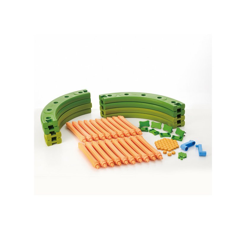 obsah: 4 x čtvrtkruh (rozměry 1 čtvrtkruhu: šířka 44 cm, délka vnější hrany 83 cm, délka vnitřní hrany 65 cm, šířka vnějších hran 13 cm, průměr příček 4 cm),