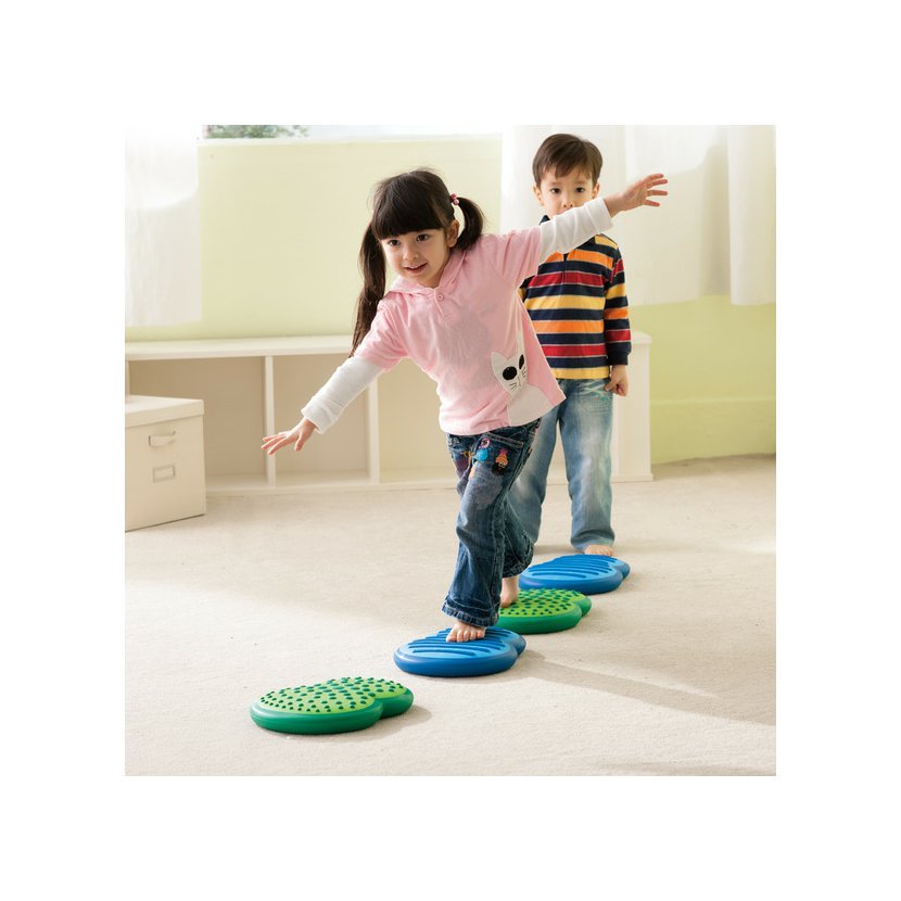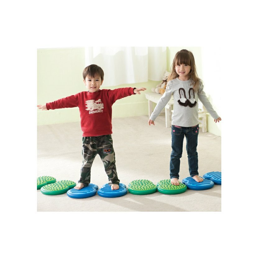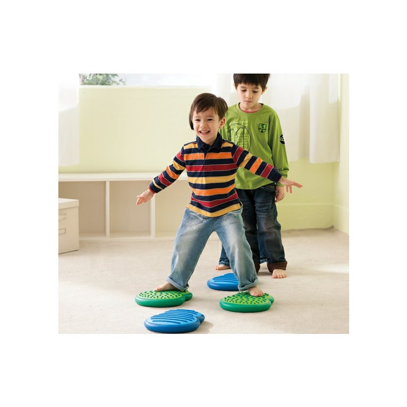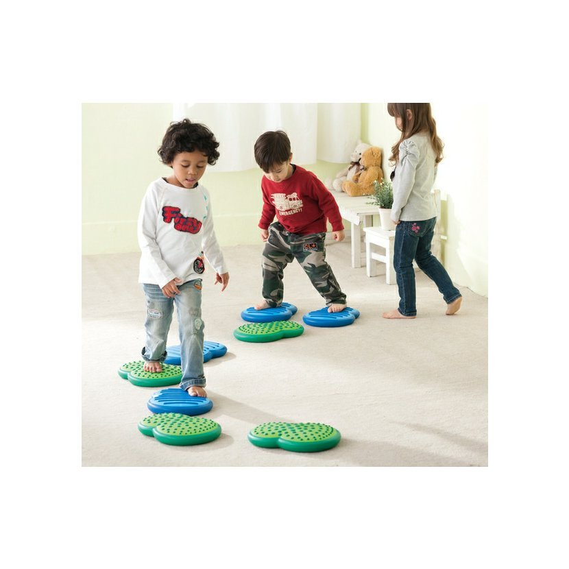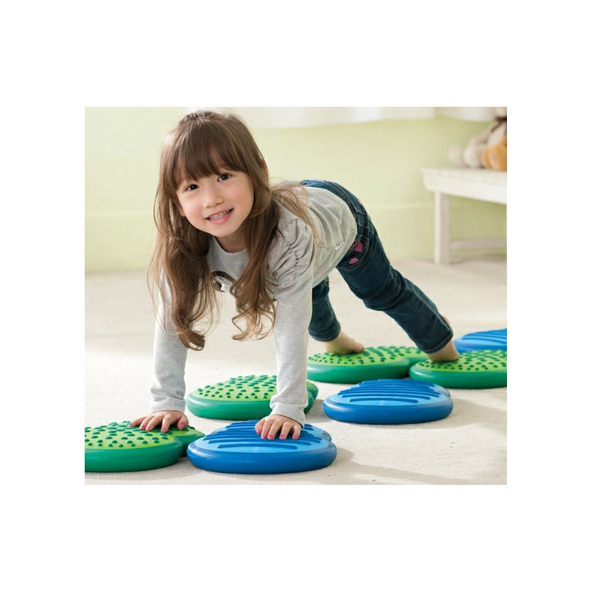 Destičky s tvrdou a měkkou stranou umožňují procvičování dynamické rovnováhy. Tečkované a proužkované vzory na destičkách nabízejí různou intenzitu hmatových vjemů. Kombinací barev, vzorů a směru lze vytvořit různé variace drah. Měkký materiál, povrch umožňuje taktilní stimulaci a je protiskluzový. Lze kombinovat s duhovými říčními kameny či zvlněnými chodníčky.