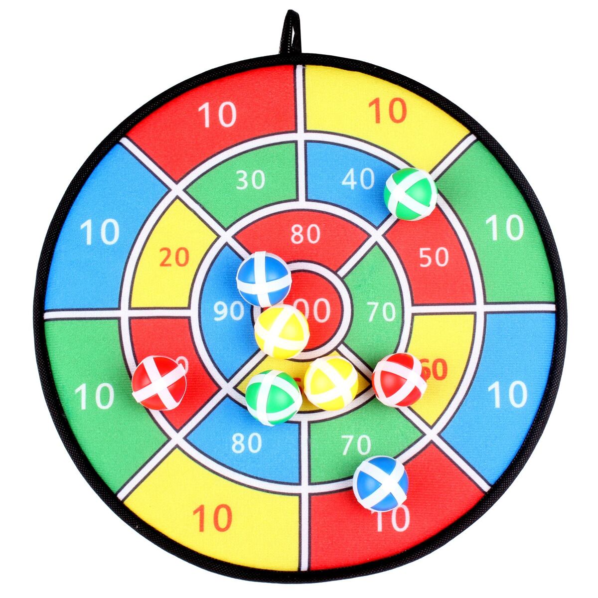 Jednoduchá, avšak velice hravá dětská hra Ball Target zabaví rychle celou rodinu. Spočívá v jednoduchém strefování terče pomocí přidaných míčků. Cílem hry je samozřejmě naházet co nejvíce bodů. Na terči o průměru 36 cm naleznete pole s hodnotami od 10 do maximálních 100 bodů. Celkem 8 míčků je rozděleno do 4 barev a to - modré, zelené, žluté a červené. Povrch míčků je upraven speciální páskou, která udrží míček na terči. Můžete tak terč zavěsit na zeď a plynule hrát formou šipek. Zároveň tato vlastnost plní i funkci praktickou. Nemusíte se bát, že by se vám jednotlivé míčky poztráceli. Tato hračka se perfektně hodí do dětských pokojíků, školek nebo sportovních klubů. Upozornění: Produkt není vhodný pro děti mladší 3 let.