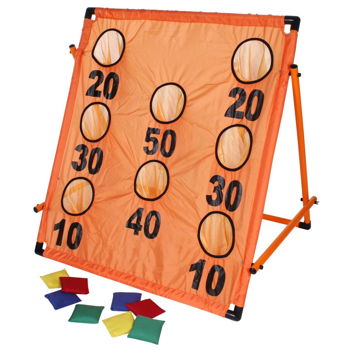 Merco Bean Target je zábavná hra pro celou rodinu, která je založená na podobném principu jako je populární americký Cornhole. Celá sada obsahuje skládací terč vyrobený z polyesteru a lehké PVC konstrukce a barevnými sáčky, které jsou naplněné fazolkami či kuličkami. Hru můžete hrát sami a trénovat tak svou přesnost spodního hodu, nebo hrajte s přáteli a vytvořte si svou soutěž o to, kdo získá nejvíc bodů. Terč má po jednoduchém složení rozměry přibližně 90 x 93 x 72 cm a hmotnost necelých 1,5 kg. Díky tomu jej jednoduše kamkoliv přenesete. Pokud hledáte novou hru do školy, pro dětské kroužky nebo pro svou rodinu, Bean Target je to pravé! Upozornění: Není vhodné pro děti mladší 3 let. Vždy házejte bean bag spodem na terč a ne plnou silou horním švihem, jinak časem hrozí poškození terče. - sada: 1x terč + 4 páry bean bag sáčků - materiál: polyester, PVC, bavlna - terč: 90 x 93 x 72 cm (výška x šířka x hloubka) - průměr otvoru: 13 cm - bean bag: 9,5 x 9,5 cm, 80 g - rozměry balení: 113 x 13 x 12 cm - hmotnost sady: cca 2,3 kg