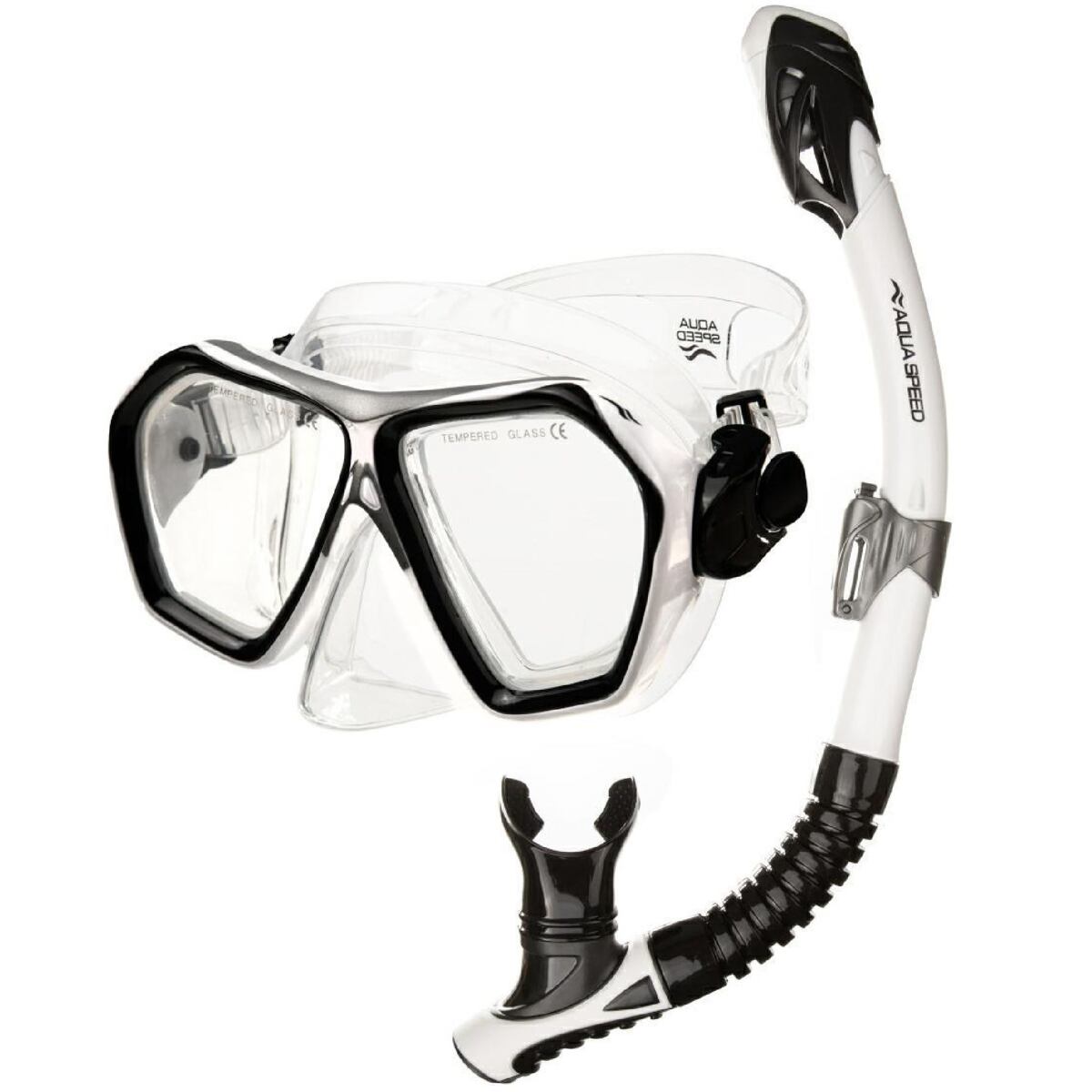Sada na šnorchlování a rekreační potápění AquaSpeed Blaze + Borneo obsahuje masku i šnorchl a je vhodná pro dospělé a teenagery ve věku 12+. Maska v moderním designu je vyrobena z odolného tvrzeného 4 mm zorníku, silikonu a s jednoduchým systémem QUICK-FIT pro nastavení velikosti. Šnorchl má silikonový profilovaný náustek, spodní ventil pro vyfouknutí vody, silikonový spodní vlnitý krček a lehce jej připnete k masce díky nastavitelné přezce. Celá sada je zabalená v praktické síťované tašce se stahovací šňůrkou pro snadnější přenášení.