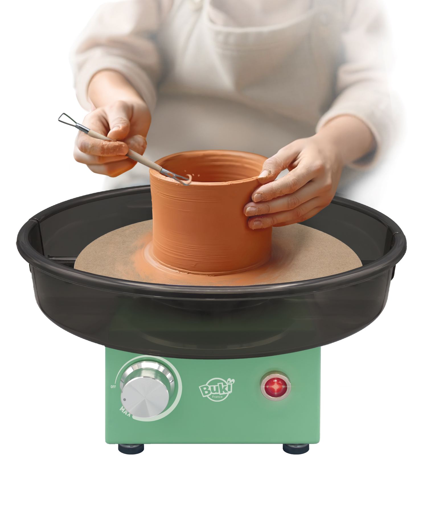 Skutečný hrnčířský kruh, který seznámí děti i dospělé s technikami točení, s ilustrovaným návodem. Kruh se otáčí rychlostí až 220 otáček za minutu, umožňuje plynulé a přesné točení keramické hlíny. Kovová točna kruhu má průměr 20cm a lze ji použít k vytváření různých výtvorů všech velikostí. Součástí balení jsou dvě podložky, abyste mohli své výtvory nechat uschnout a uvolnit tak kruh pro nové výtvory. Zařízení je vhodné pro leváky i praváky díky možnosti změnit směr otáčení kruhu. Odnímatelná vana na nečistoty usnadňuje čištění. Mnoho příslušenství je součástí balení: 1 kg hlíny schnoucí na vzduchu 5 dřevěných a kovových nástrojů 1 houba 2 podložky Hrnčířský kruh funguje pouze s dodaným síťovým adaptérem, který zajišťuje napájení 12 V. Rozměry balení: cca 27,7 × 14,8 × 27,7 cm Doporučeno pro děti od 10 let, pod dohledem dospělé osoby. Upozornění na bezpečnost: obsahuje ostré hrany a elektrické součásti – používat pod dohledem dospělého. Likvidace elektrického zařízení podle předpisu o elektroodpadu (např. WEEE).