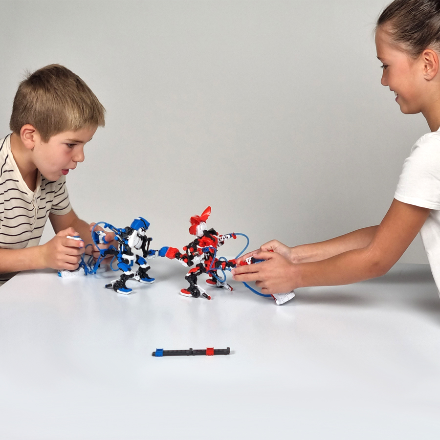 Hydraulické boxování je stavebnice pro šikovné kluky i holky, kteří si chtějí svou hračku sami sestavit a pochopit jak funguje. Stavebnice se skládá z 327 dílů a výsledkem jsou 2 boxeři, každý se svým ovladačem. Pomocí hydraulického systému se potom ovládají pohybové a útočné funkce boxerů a s boxery lze soutěžit v boxování. Použij údery jako spodní hák, přímý úder direkt nebo úder celým tělěm. Každý robot může mít jinou masku (robot nebo klokan) a tím získá jiné obranné schopnosti. Systém ovládání je založen na hydraulickém tlaku skrze písty a hadičky naplněné vodou. Celek pak umožňuje pochopení některých fyzikálních zákonů v praxi. Sestavení jednoho robota zabere cca 1,5 hodiny a vyžaduje odpovídající manuální zručnost, případně drobnou pomoc (dohled) dospěláka. Sestav boxery s kamarádem a pak společně soutěž na body. Funkce robotické ruky: - 327 dílů k sestavení dvou boxerů s ovladači - ovládání pomocí hydraulického systému - výška boxerů cca 15cm - několik typů boxerských úderů - bodovací systém - vhodné pro dva hráče (pro stavbu i souboj) Obrázkový návod s českým překladem. Nevyžaduje žádné baterie Vhodné pro děti od 8 let