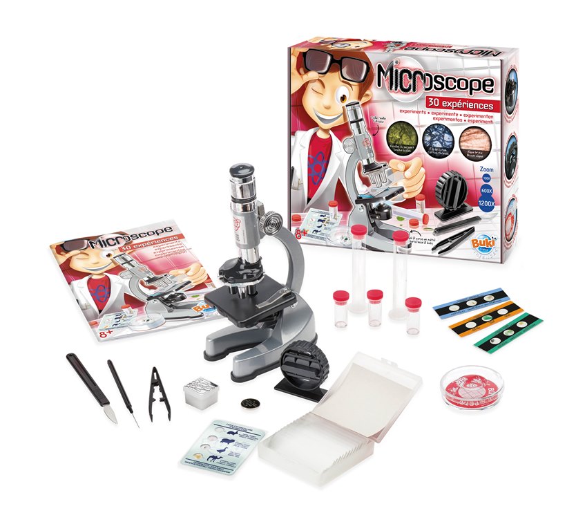 Mikroskop BUKI MS907B má kvalitní konstrukci se spodním LED osvětlením pozorovaného vzorku. Sada obsahuje mnoho příslušenství a 30 popsaných experimentů. Mikroskop je vhodný pro malé badatele a vědátory. Kovová konstrukce těla mikroskopu i základny zaručuje stabilní pozorování a dlouhou životnost. Zvětšení 200x 600x a 1200x. Mnoho předpřipravených preparátů pro okamžité zkoumání a volná podložní sklíčka. Další potřebné a důležité příslušenství pro biologické a jiné pokusy jako Petriho miska, mikrokráječ, pinzeta a další. Zkoumat můžete mnoho věcí, např. detailní struktury hmyzu, listů či květů rostlin, drobných nerostů a mnoho dalšího. Obsah sady: Mikroskop 1 karta se 4mi vzorky srsti zvířat 3 podložní sklíčka s 9ti vzorky 12 prázdných podložních sklíček 1 Petriho miska 1 mikro kráječ 1 jehla 1 skalpel 1 pinzeta 3 malé zkumavky 2 větší zkumavky 12 krytů podložních sklíček a 12 štítků Součástí je originální obrázkový návod s kompletním českým překladem Vhodné pro děti od 8 let s dohledem dospělé osoby. Nevhodné pro děti do 3 let, obsahuje malé dílky a hrozí udušení.