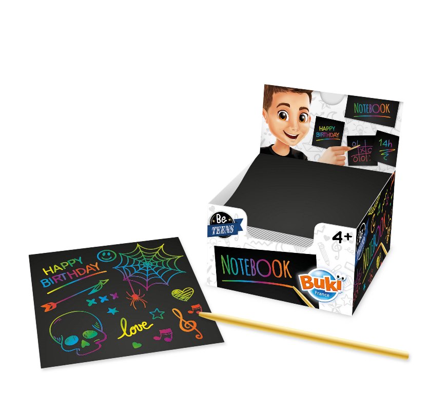Poznámkový bloček obsahuje celkem 150 listů o velikosti 9x9cm. Pomocí přiloženého dřevěného nástroje napište/vyškrábejte vzkaz a ten potom bude efektně barevný. Vhodné pro kreativní duše a předávání nevšedních vzkazů. Doporučený věk: 3+