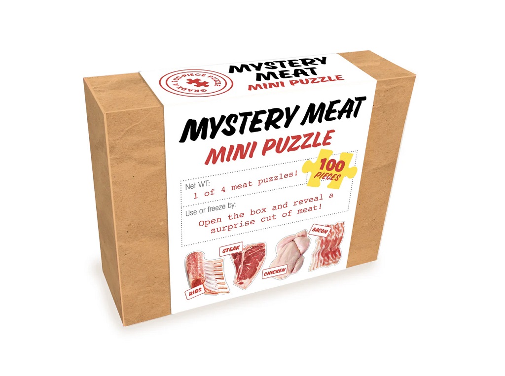 Krabička s překvapením. Ideální pro fanoušky originality. Speciální mini puzzle v rustikálním balení. Puzzle, kde se obrázek odhalí, až po jeho složení. Otevřete záhadnou krabičku a objevte svůj kus masa. Možnosti jsou čtyři. Žebra, steak, kuře či slanina. Které z puzzlí bude právě ve Vaší krabičce? Vyrobeno z recyklovaných materiálů a z papíru s certifikací FSC. Potištěno netoxickými inkousty. Hlavní vlastnosti: originální mini puzzle obsahuje 100 dílkůuvnitř krabičky překvapení - jedna ze čtyř možností (žebra, steak, kuře či slanina)vyrobeno z recyklovaných materiálů Značka a certifikát FSC® (Forest Stewardship Council) zaručuje, že dřevo, ze kterého byl produkt vyroben, nebylo vytěženo nelegálně a pochází z lesů obhospodařovaných šetrným či přírodě blízkým způsobem, ve kterém jsou dodržovány přísné environmentální a sociální požadavky. Značka FSC® na výrobku znamená, že svým nákupem pomáháte chránit lesy a podporujete šetrné, odpovědné či přírodě blízké hospodaření, díky kterému jsou naše lesy stabilnější, zdravější, mají přirozenou druhovou skladbu a lépe odolávají negativním následkům klimatických změn.
