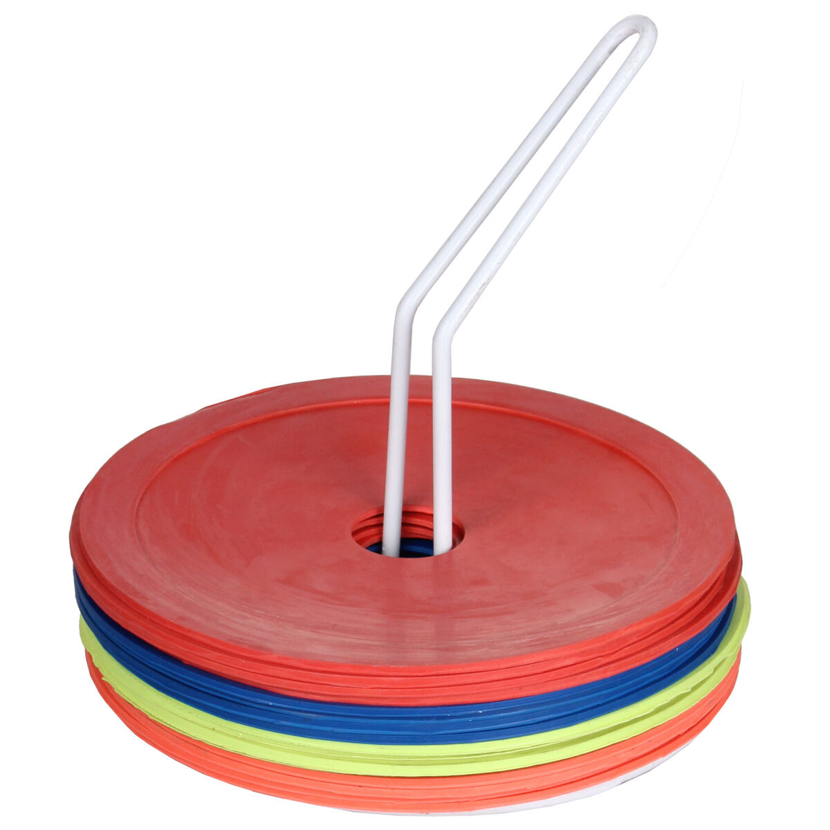 Sada šestnácti barevných vytyčovacích značek ve tvaru kruhu. Sada značek na podlahu Merco je vyrobená ze zdravotně nezávadného a snadno omyvatelného TPE materiálu. Průměr značky je 15 cm a hmotnost přibližně 50 g.