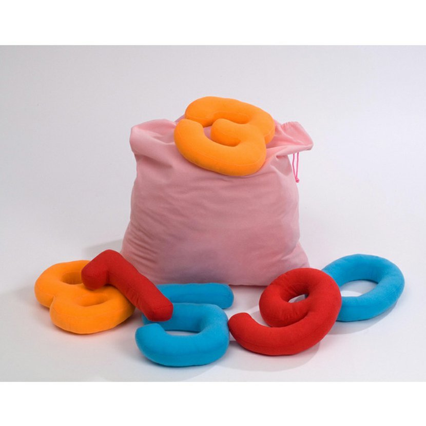 Existuje velké množství nápadů pro hravé učení např. Vymyslet zvíře s počátečním písmenem M, opsat čísla na papír, tvořit slova tím, že každé dítě si drží jedno písmeno před sebou a podle něj vymýšlí nebo každé z 10 dětí dostane jedno číslo a postupně počítají společně od 0-9, atd. Na závěr si mohou děti s těmito měkkými látkovým čísly a písmeny pohrát.