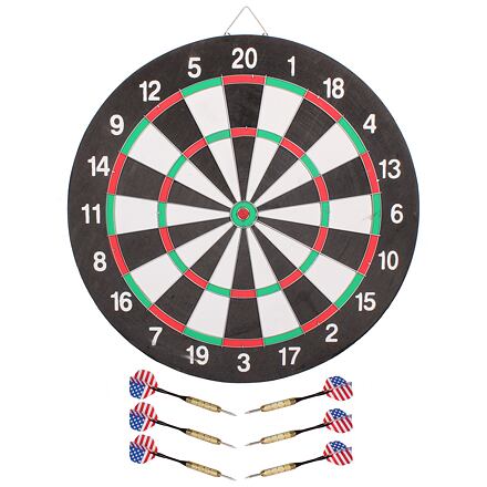 Oboustranný terč na šipky DB 45 je ideální terč pro začátečníky a rekreační hráče. Terč je vyrobený z mnohovrstvého lisovaného papíru s potiskem opatřeným kovovou konstrukcí. Rozměry terče jsou 43 x 2 cm. Na jedné straně je vyobrazený klasický terč s postranními čísly a ocelovými drátky. Druhá strana nabízí zjednodušenou černo-bílou verzi s bodováním od 1 - 9. Balení také obsahuje dvě sady šipek po třech kusech s ocelovými hroty. Soutěžte s kamarády o nejlepšího šipkaře se sadou DB 45. Parametry: - rozměry terče: 43 x 2 cm - obsah balení: 6x šipky, 1x terč - hmotnost balení: 2,3 kg - materiál: PE plast, železo, mnohovrstvý lisovaný papír