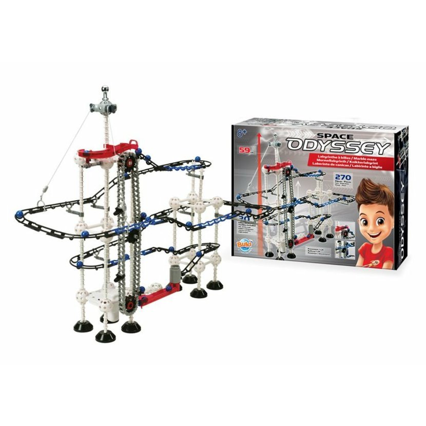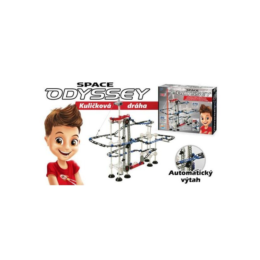 Kuličková dráha Space ODYSSEY je velmi atraktivní stavebnice, která umožňuje množství různých variant sestavení. K dispozici je velké množství součástek, díky kterým můžete sestrojit nosné věže, úchyty, kolejnice a hlavně výtah pro nekonečný koloběh kuliček.