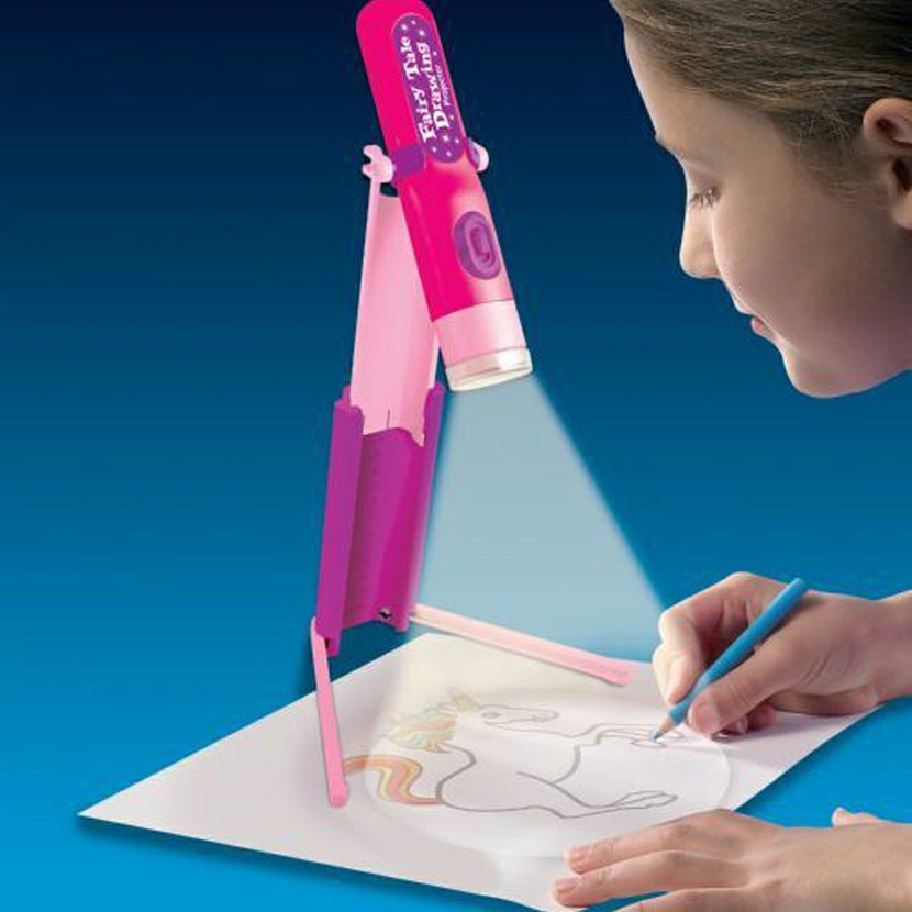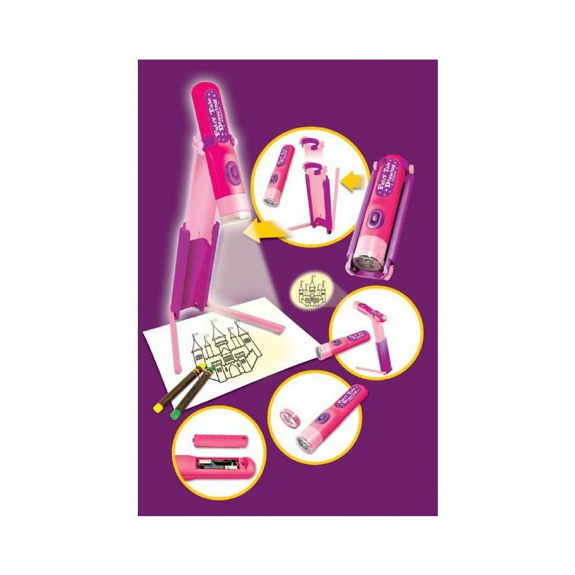 Pomocí skládacích nožiček se projektor postaví nad papír, nasadí jedno z přiložených stínítek s pohádkovým motivem a může se začít s kreslením. Kreslit je možné různé pohádkové výjevy jako hrad, princeznu, draka, čaroděje, koně nebo vílu. Ostatní už je na představivosti dítěte.