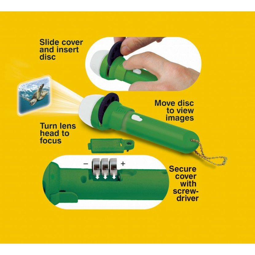 Na snímcích jsou roztodivná mořská stvoření v perfektní kvalitě a jistě potěší každého milovníka ryb a mořského života. Snímky z projektoru lze zaostřit až na vzdálenost několika metrů od zdi/stropu a dosáhnout tak projekce o šíři až 1metr! Ideální pro holčičky i kluky pro hraní před spaním nebo jako zajímavý doprovod při povídání o zvířatech! Lze použít i jako příruční svítilnu.