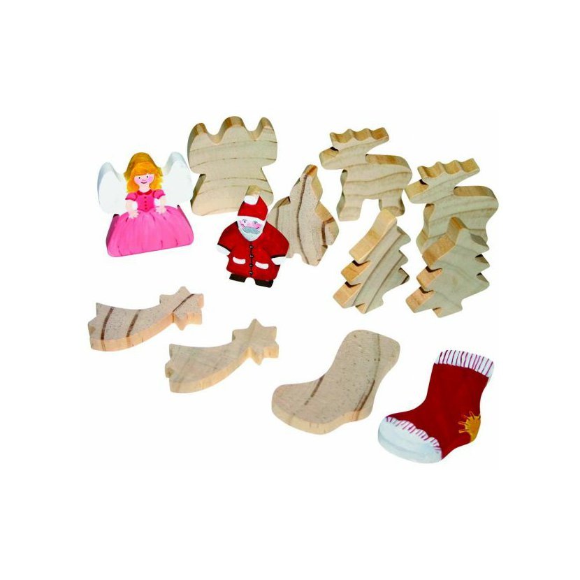 Dřevěné vánoční figurky - 12 ks k vybarvení