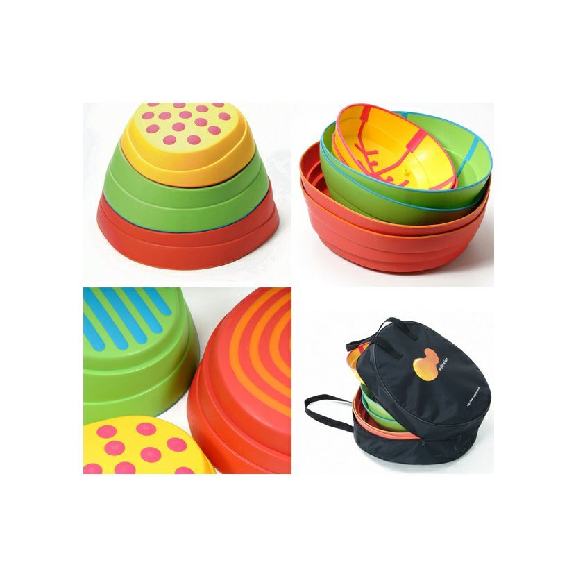 3 různé velikosti říčních kamenů budou vyhovovat potřebám rostoucích dětí a také umožňují vytvoření libovolných chodníčků přes řeku podle vlastní fantazie. Každý "kámen" je tvořen tak, aby měl 3 směrové body označeny čísly 1, 2, 3. Když se snaží dávat děti "kameny" na sebe, musí dávat pozor nejen na velikost ale také na směr a pootočit"kámen" tak, aby všechny směrové body shodovaly.