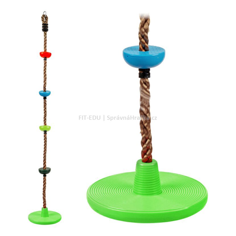 Dětské šplhací lano s barevnými disky a zakončeno kulatou houpačkou z plastu.Nezbytný pomocník pro objevitele venkovní zábavy na dětském hřišti nebo k domečku na stromě. Hlavní vlastnosti: nosnost 100 kgpevné lano o tloušťce 2,6 cm