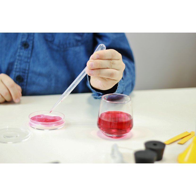 Experimenty zahrnují např.: - seznámení se základními postupy - výrobu roztoků a barviv - pozorování chování kapalin a jejich molekul - reakce na bázi tepla a chladu - pokusy s inkoustem - vznik pevného skupenství ze dvou kapalin - krystalizace - změny barev a mnohem, mnohem více ... OBSAH SADY: 28 druhů příslušenství včetně ochranných brýlí , 5 druhů chemikálií, Originální obrázkový návod s českým překladem.