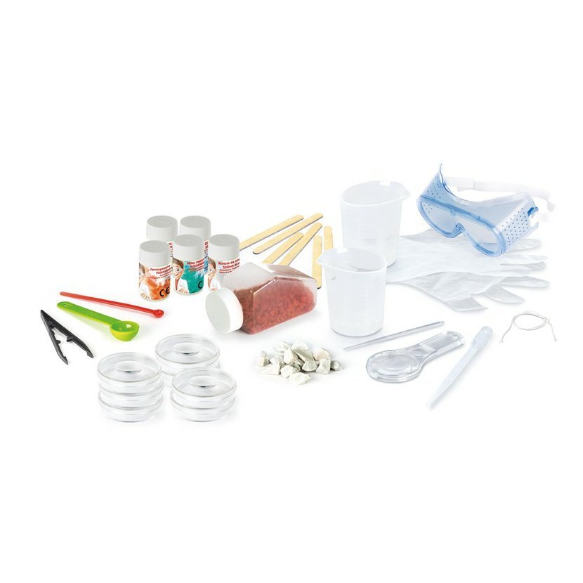 Krystalová laboratoř I je experimentální sada pro malé vědátory. V sadě najdete vše co potřebujete k výrobě krystalů různých barev a druhů. Uvidíte a pochopíte jak krystaly vznikají a jak se formují do rozmanitých tvarů. Součástí sady jsou chemické přísady, dále nádobky, zkumavky, kádinky a další. Sada myslí na bezpečnost, takže obsahuje i ochranné brýle a rukavice.
