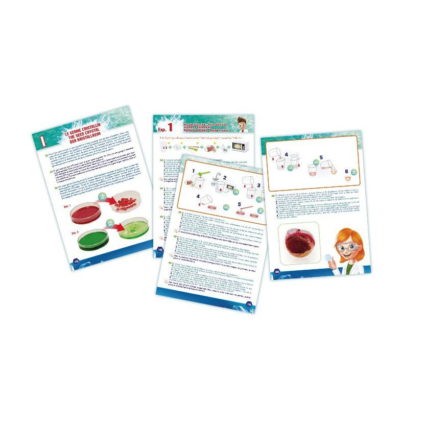Návod obsahuje celkem 15 pokusů a k realizaci některých z nich budete navíc potřebovat pomůcky, které se běžně nacházejí v každé domácnosti (např. vodu, mikr.troubu, hrnec, apod.). Díky této fantastické laboratoři s vybavením a příslušenstvím se děti mohou blíže seznámit se zajímavými chemickými reakcemi. Sada obsahuje přírodní nebo syntetické ingredience, které nejsou přímo nebezpečné, ale při provádění pokusů se doporučuje dohled a asistence dospělé osoby.