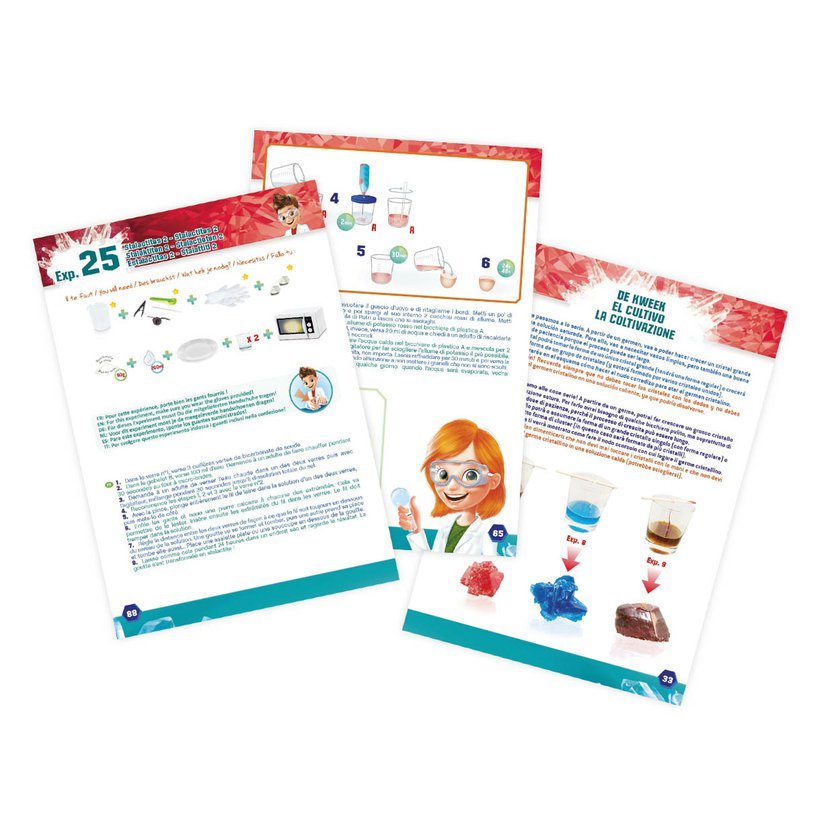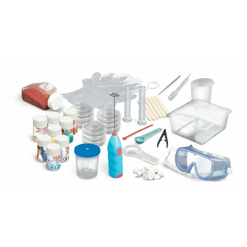 Díky této fantastické laboratoři s vybavením a příslušenstvím se děti mohou blíže seznámit se zajímavými chemickými reakcemi. Sada obsahuje přírodní nebo syntetické ingredience, které nejsou přímo nebezpečné, ale při provádění pokusů se doporučuje dohled a asistence dospělé osoby a dodržování zásad bezpečnosti popsaných v návodu.
