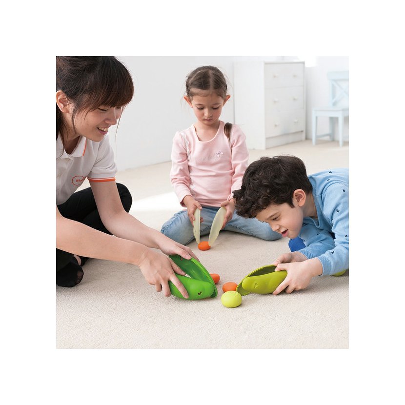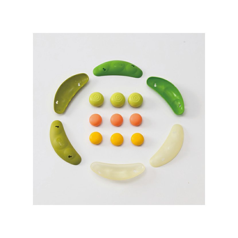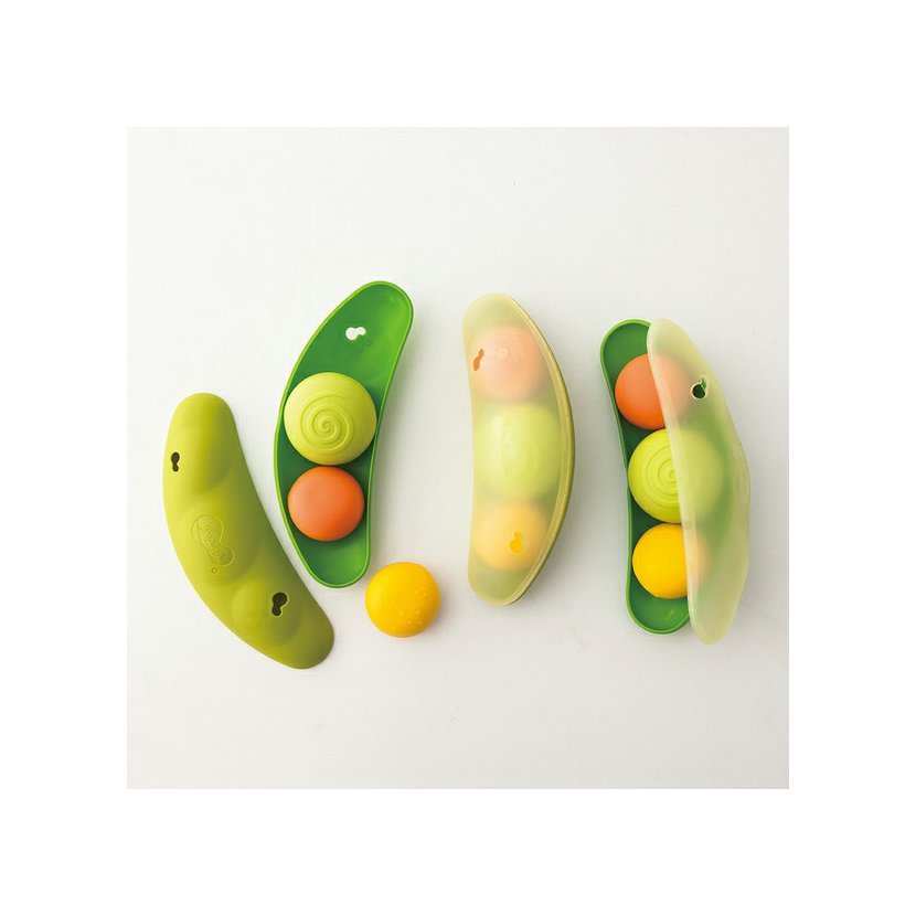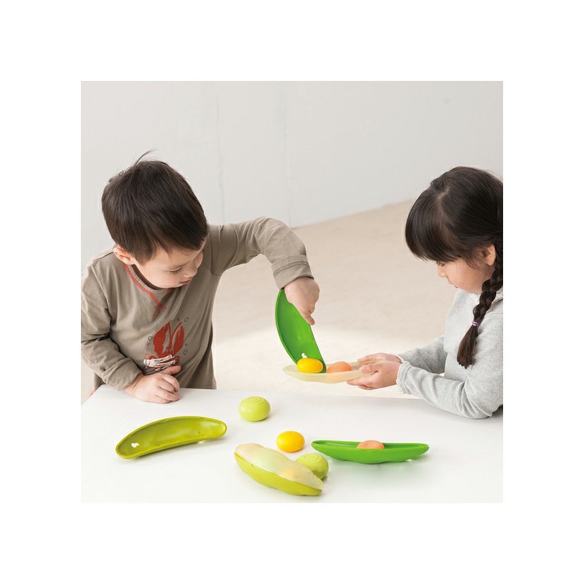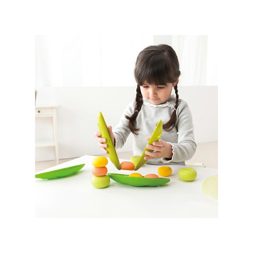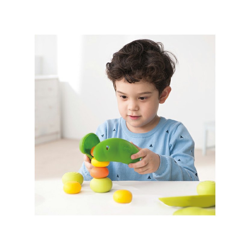 Fazolové lusky mohou děti použít jako pomůcku k držení, nabírání nebo odebírání jednotlivých fazolek. Každá ze tří lusků obsahuje 3 fazolky v různých barvách a velikostech s rozdílným povrchem. To umožňuje nespočetně mnoho variant hraní (třídění, stavění na sebe, nabírání).