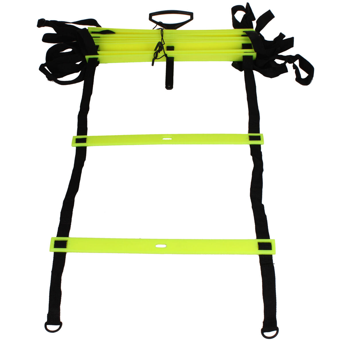 Agility žebřík je trenérská pomůcka s příčkami k procvičování koordinace, zvýšení kondice a rychlosti sportovců. Plastové příčky žebříku jsou snadno nastavitelné pro přizpůsobení jednotlivých vzdáleností mezi nimi, podle potřeb uživatele. Unikátním vylepšením je madlo, které je možné protáhnout středem žebříku. Madlo pak slouží nejen jako nosič, ale zabraňuje i zamotání žebříku. Tento model je nabízen v rozměru 4,5 a 9 m a dodáván společně s obalem. Upozornění: Agility žebříky neslouží v žádném případě k lezení, nýbrž ke cvičení techniky a rychlosti sportovců na zemi.