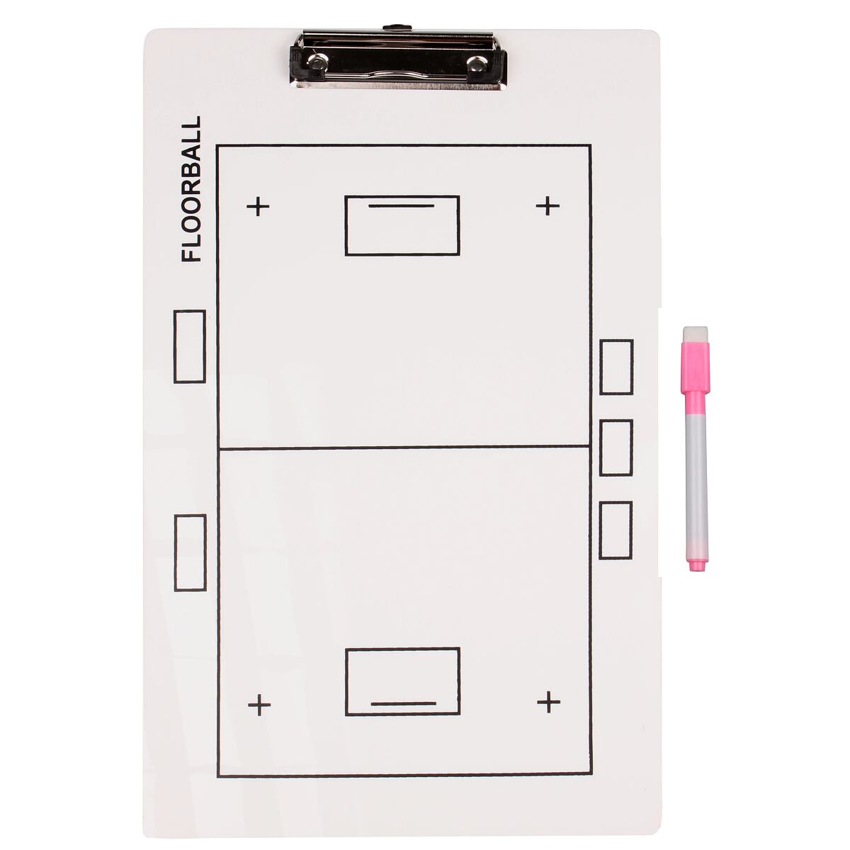 Merco Floorball 40 patří mezi základní vybavení každého trenéra florbalu a slouží pro demonstrování a plánování herních strategií. Tato taktická tabule s rozměry 39,5 x 24 cm znázorňuje hřiště na jedné straně a polovinu hřiště na druhé straně. Součástí je i popisovač s houbičkou pro mazání a kovový klip pro uchycení tréninkových listů. Taktická deska Merco Floorball 40 je nejsnazší a nejrychlejší cesta pro vaše přesné herní pokyny hráčům kdykoliv během zápasu! - materiál: PE - rozměry: 39,5 x 24 cm - hmotnost: cca 350 g - s kovovým klipem - není magnetická