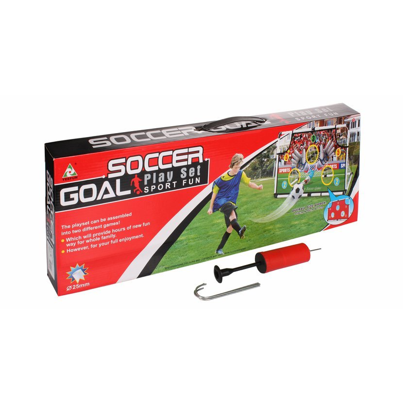 Součástí balení je střelecká plachta s otvory pro míč, kterou je možno připevnit do branky několika suchými zipy. Balení dále obsahuje gumový nafukovací fotbalový míč a pumpičku s integrovanou jehlou pro jeho nafouknutí.