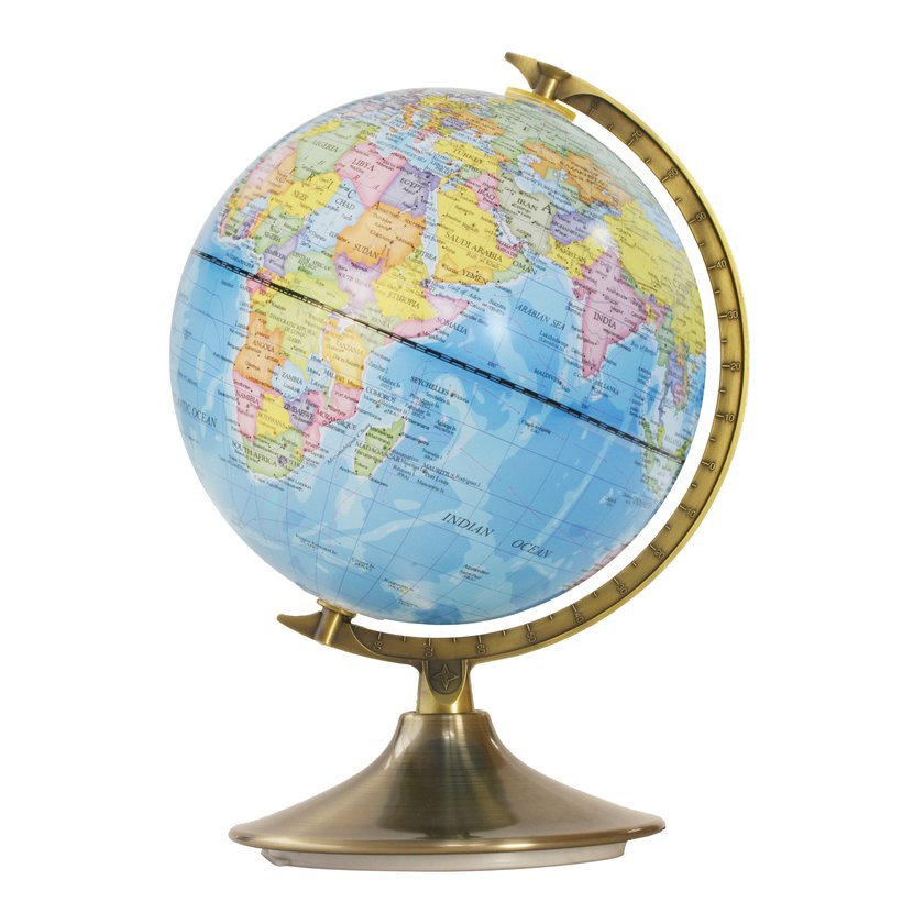 Popisky na globu jsou v angličtině.