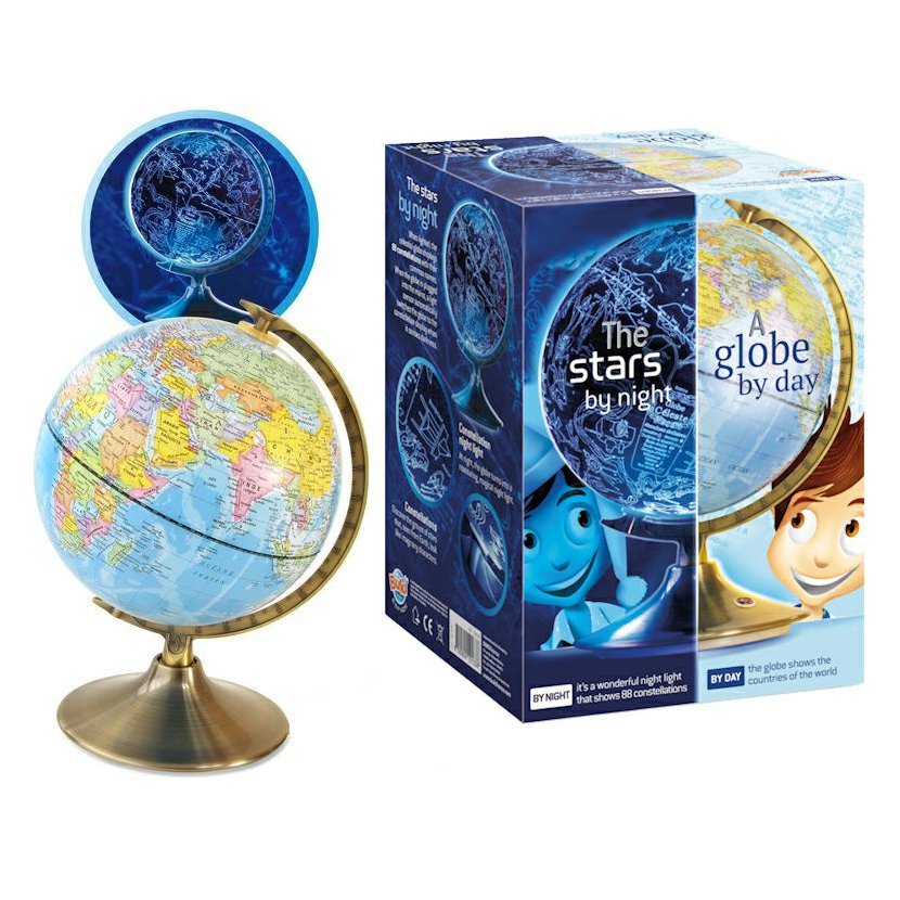 Globus 2v1 - zeměkoule ve dne a noční obloha se souhvězdími v noci