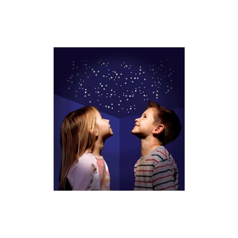 Vhodné pro vytvoření hvězdné oblohy na stropě dětského pokojíčku nebo pro polepení školní tašky, kola apod.