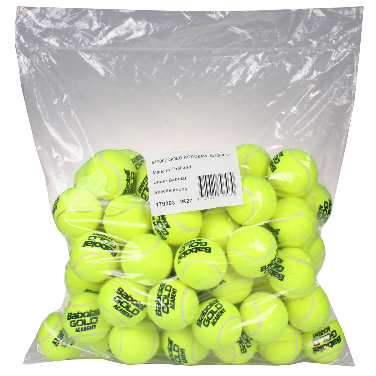 Pytel tenisových míčů Babolat Gold Academy s 72 kusy beztlakových míčů, které vynikají dlouhodobě stabilním výkonem, je oblíbený především tenisovými trenéry. Beztlaké míče jsou dlouhodobě schopné si podržet svůj stabilní odraz, na rozdíl od soutěžních míčů, jenž sice pro svůj živější odraz vynikají lepšími herními vlastnostmi, ale nejsou schopné si dlouhodobě podržet svůj odraz. Beztlaké míče Vám nabízí takřka nekonečně dlouhý stabilní herní potenciál. Míče Gold Academy jsou vhodné i pro použití tenisovými nahrávacími stroji. Všestrannost Gold Academy Vám umožňuje použití na všech typech kurtů, na antuce, trávě i na betonu bez markantního rozdílu. Každý hráč tenisu i trenér tenisu ví, jak je pro trénink užitečné mít vždy po ruce plný koš míčů.