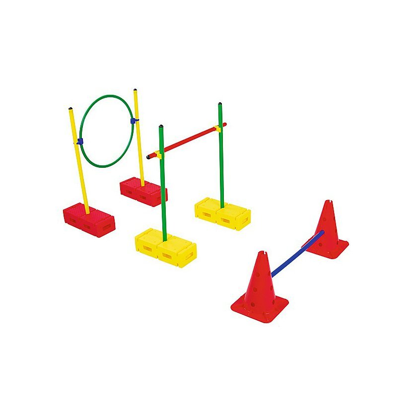 Vícedílná sada umožňující sestavení různých překážkových drah a zajímavých sestav pro gymnastická cvičení. Sada obsahuje: gymnastické hrazdy - délka 70 cm - 8 ks, obruče o prům. 50 cm - 4 ks, spojovací cihly- 4 ks, upínací svorky - 30 ks, kužely - 4 ks (2 žluté, 2 červené)