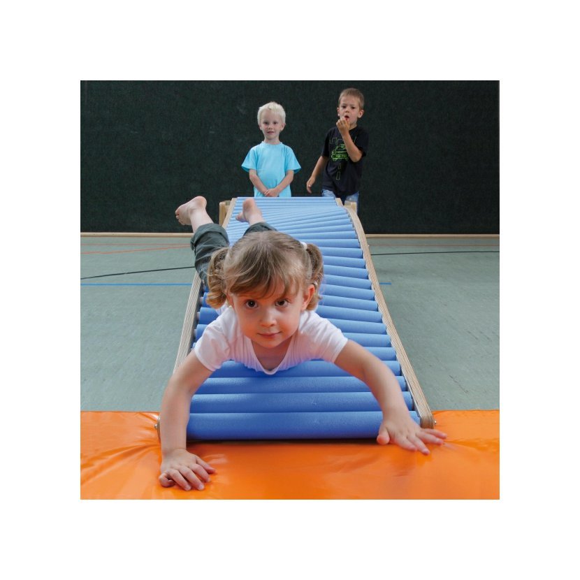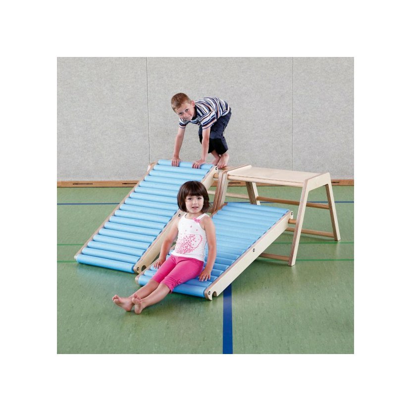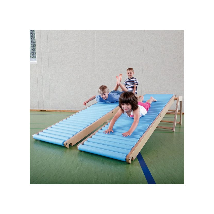 Je ideálním doplňkem jakýchkoliv překážkových drah. Válečkovou skluzavku lze připevnit na gymnastický podstavec (viz. obrázek, není součástí dodávky) nebo standardní žebřiny, nebo jednoduše položit na zem.