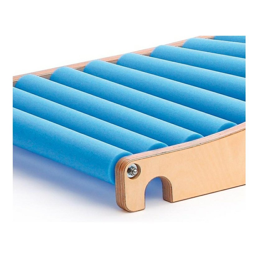 Otáčivé válečky z pěnové hmoty jsou pevně upevněny na dřevěné základně a umožňují klouzání dopředu nebo dozadu, v leže, v sedě nebo v kleče, na břiše, nebo na zádech.