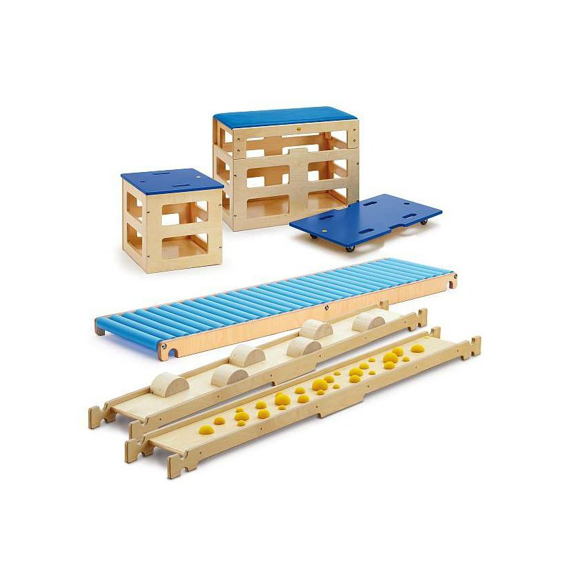 obsah: celá sesatva obsahuje 6 dílů, které lze libovolně kombinovat (E44467 Sportovní bedna, E44469 Sportovní bedna - horní díl, E44468 Sportovní bedna S, E46381 Balanční lavička - Větve, E46382 Balanční lavička - Lesní cesta, E44464 Válečková skluzavka L)