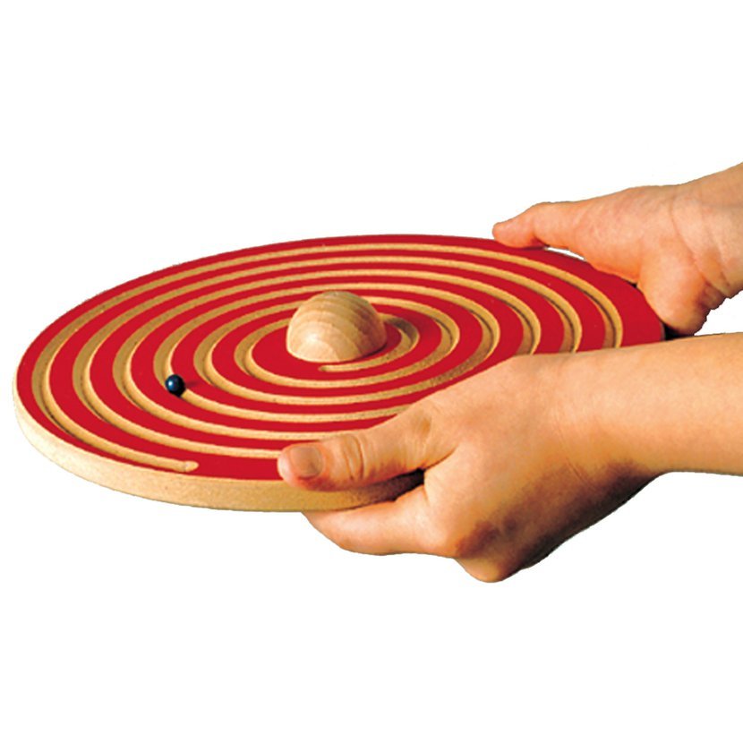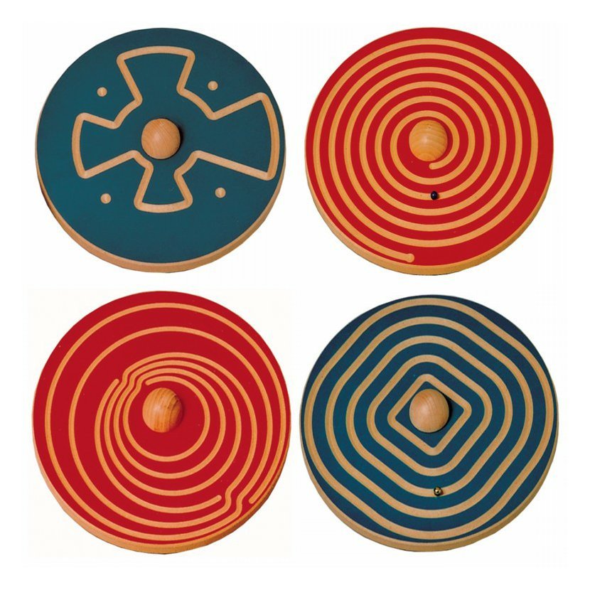 Balancování disku s různými kuličkami uvnitř vyřezaných drah zase vyžaduje zručné ruce. Může být využíváno pro individuální hru či pro hru ve skupině s proporcionálním rozložením nároků na jemnou motoriku.