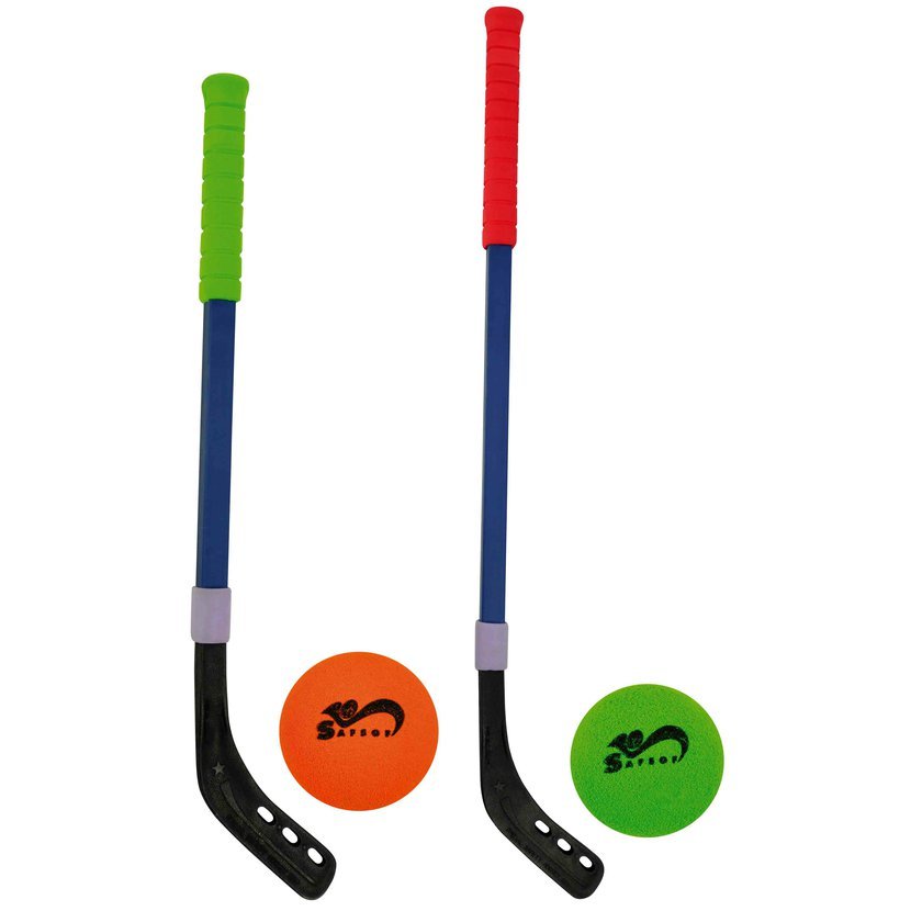 obsah: set 1 hokejka a 1 míček (Ø 7 cm), Není třeba žádného ledu a můžeme hrát hokej v interiéru i venku. Míček nahradí puk. Měkké úchopy hokejky se dobře drží v ruce.