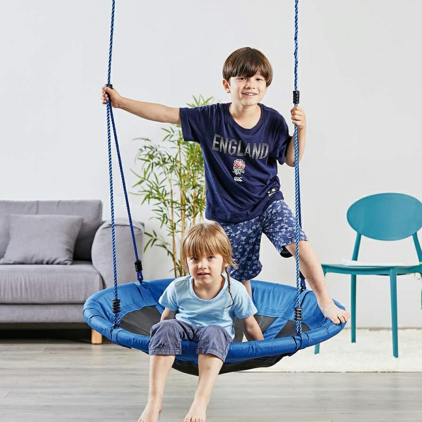 Houpačka, kterou si pro svou pohodlnost děti zamilují. Kovová obvodová konstrukce houpačky je pro zvýšení bezpečnosti zakryta pěnovou hmotou. Závěsná houpačka je připevněna na 10 mm tlustých polyesterových lanech.