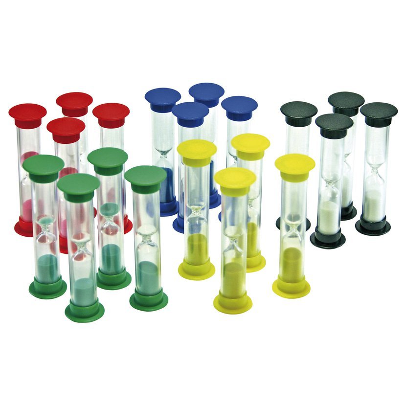 Tento set dětem umožňuje názornou formou pomocí hry porozumět základním principům plynutí času a dějům, které v určitém čase probíhají. Pomocí těchto přesýpacích hodin lze měřit časové úseky od 30 sec. do 10 minut. výška hodin je 9 cm, jednotlivé přesýpací hodiny jsou umístěny v nerozbitném plastovém pouzdře