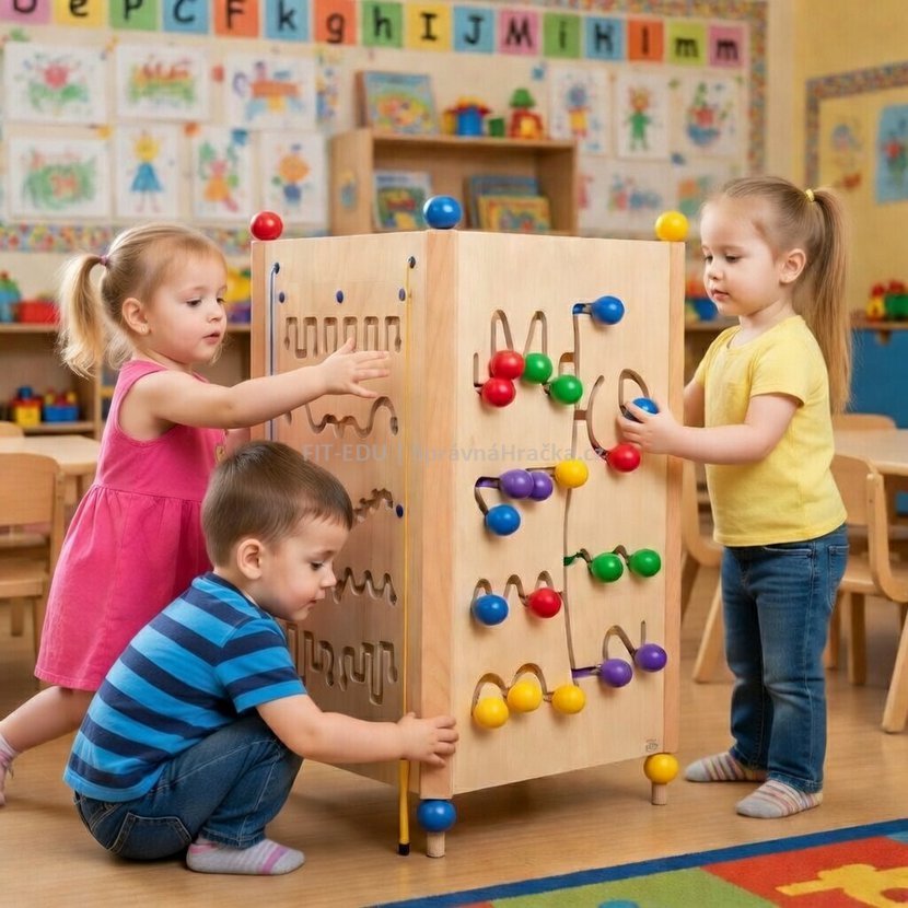 Hrací věž je dekorativní a atraktivní pomůckou. Na každé straně obsahuje jinou didaktickou hru a vybízí děti k aktivitě.