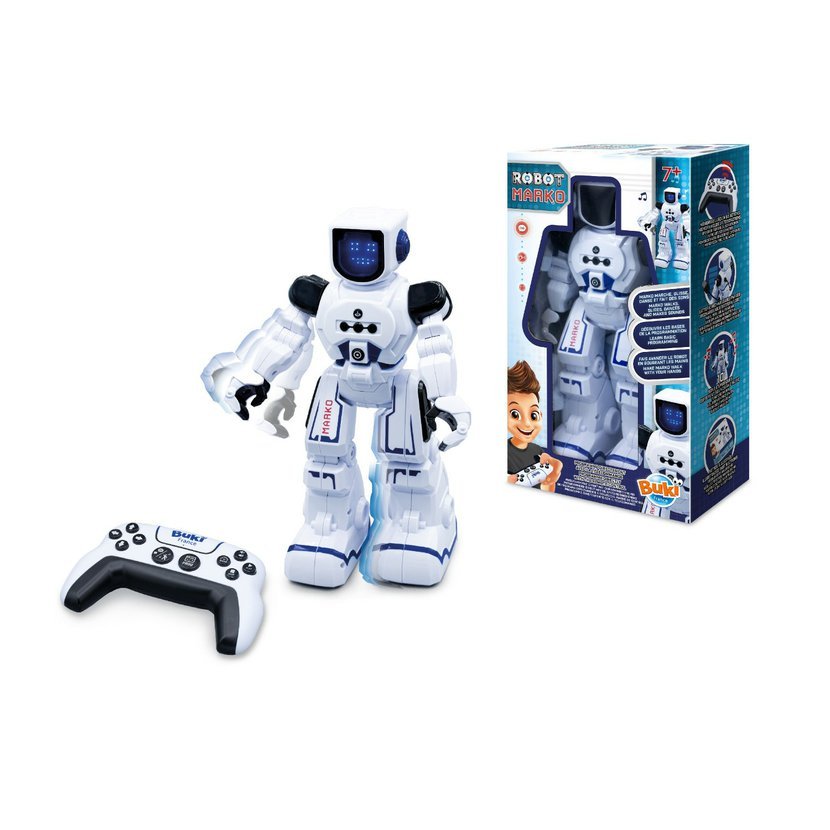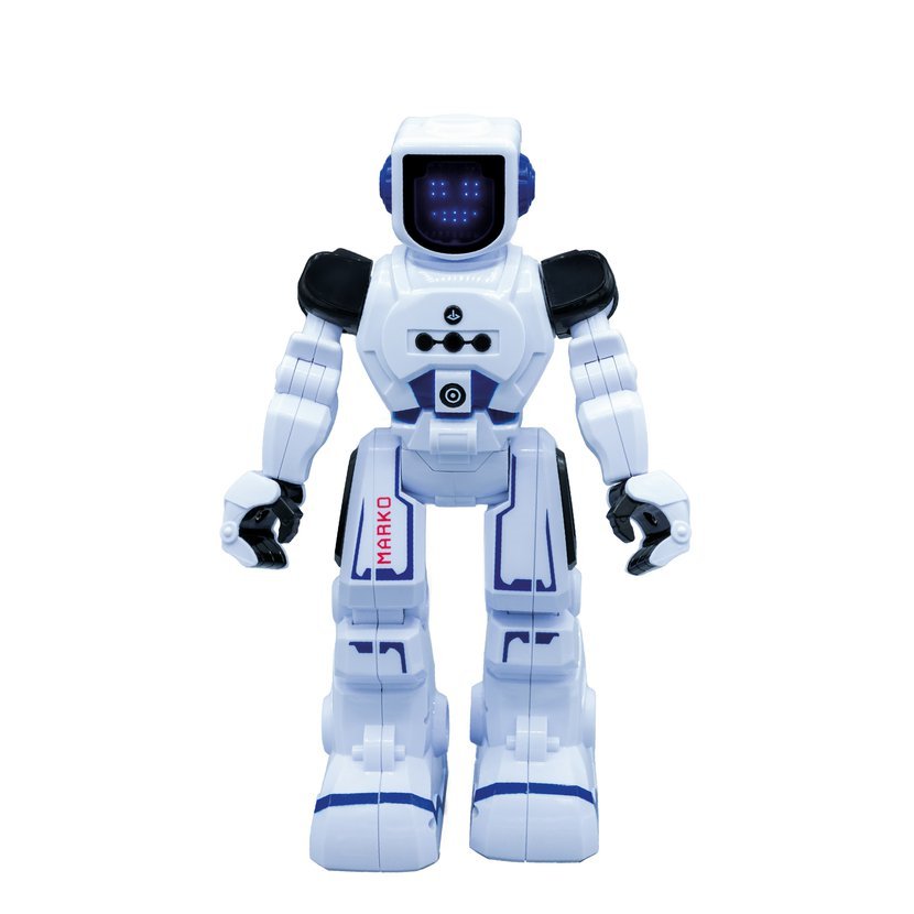 Robot Marko umí vyjádřit své emoce na robotickém obličeji, pohybuje se všemi směry, tancuje, vydává robotické zvuky, atd.