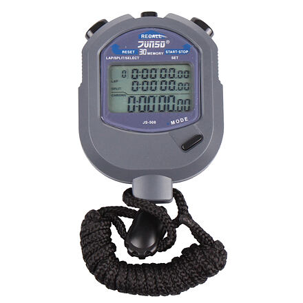 Sportovní stopky Junso JS508D nabízí měření až 30 mezičasů s přesností na 1/100s. Dále tento model nabízí vypsání nejlepšího, průměrného, ale i nejhoršího úseku. Vedlejšími funkcemi stopek jsou hodiny, kalendář, denní budík, sestupné měření času nebo krokoměr. Stopky jsou vyrobeny ve vodovzdorném provedení.