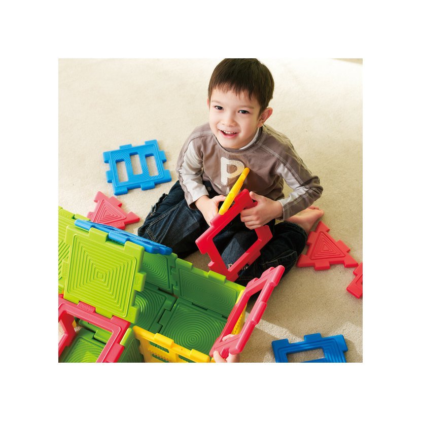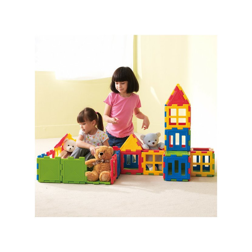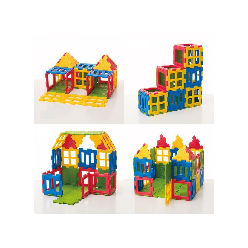 Okénka a bloky různých tvarů pomáhají dětem se naučit základy trojrozměrných geometrických útvarů jako jsou krychle, hranol a konstruovat nespočet různých objektů s využitím představivosti.