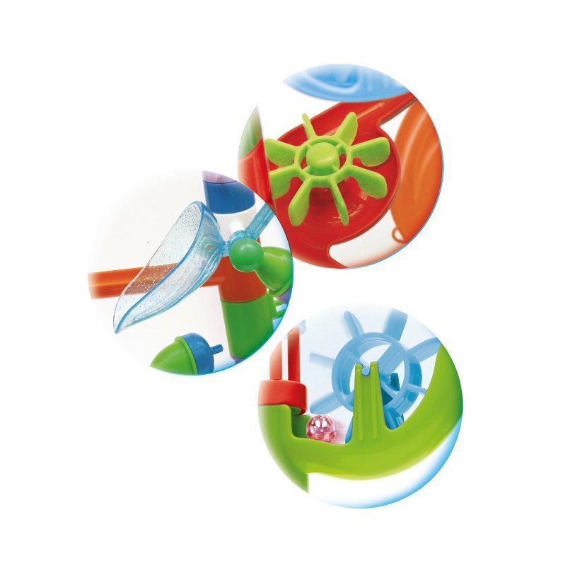 Kuličková dráha pro menší děti vhodná k rozvíjení motorických schopností a seznámení se základními fyzikálními vlastnostmi pohybující se kuličky. Stavebnice se vyznačuje velmi kvalitním zpracováním a použitým materiálem. Odolný plast umožňuje opakované použití dlouhé hodiny hraní.