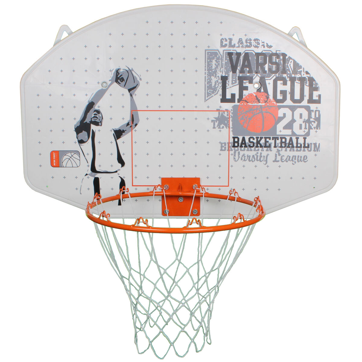 Basketbalová deska s obroučkou a síťkou New Port League je vyrobena z vysoce kvalitního syntetického laminátu odolného vůči povětrnostním vlivům, doplněná o pevnou ocelovou obroučku a síť z polyamidu. Šestihranná deska se zaoblenými tvary a decentním basketbalovým designem je díky svému elegantnímu vzhledu a rozměrům 90 x 60 x 1,6 cm vhodná i pro menší prostory a na Vašem domě, garáži, zahradě rozhodně nebude nikomu “trnem v oku“. Basketbalový koš o průměru 420 mm s deskou New Port League je dlouhodobá herní hodnota pro hráče všech věkových i výkonnostních kategorií. Celková hmotnost koše s deskou je 3 kg. UPOZORNĚNÍ: TATO DESKA NENÍ VHODNÁ PRO ZAVĚŠOVÁNÍ SE ZA BASKETBALOVÝ KOŠ, JINAK HROZÍ POŠKOZENÍ.
