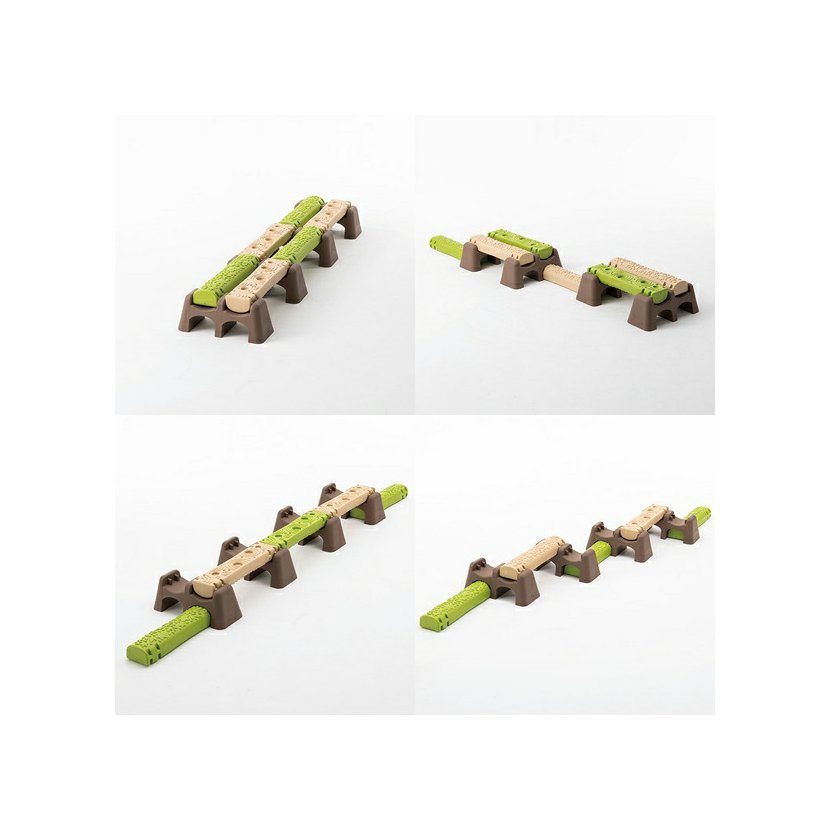 Jednotlivé prvky hry tvarově připomínají kmeny stromů, které jsou z přední strany rovné, na zadní straně vypouklé. Povrchy jsou opatřeny různou strukturou, na jedné straně jsou letokruhy, na druhé straně okvětní lístky a květiny. Hra podporuje rovnováhu a koordinaci. Naboso stimuluje hmatové receptory na chodidlech